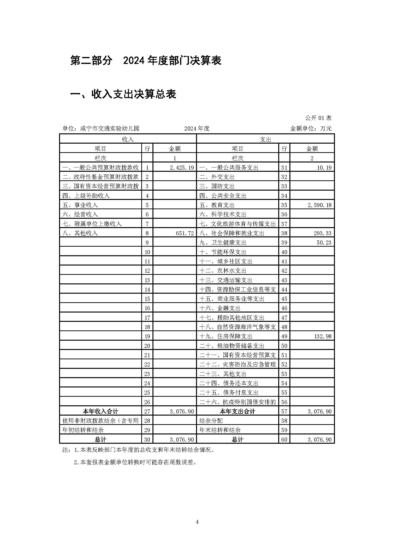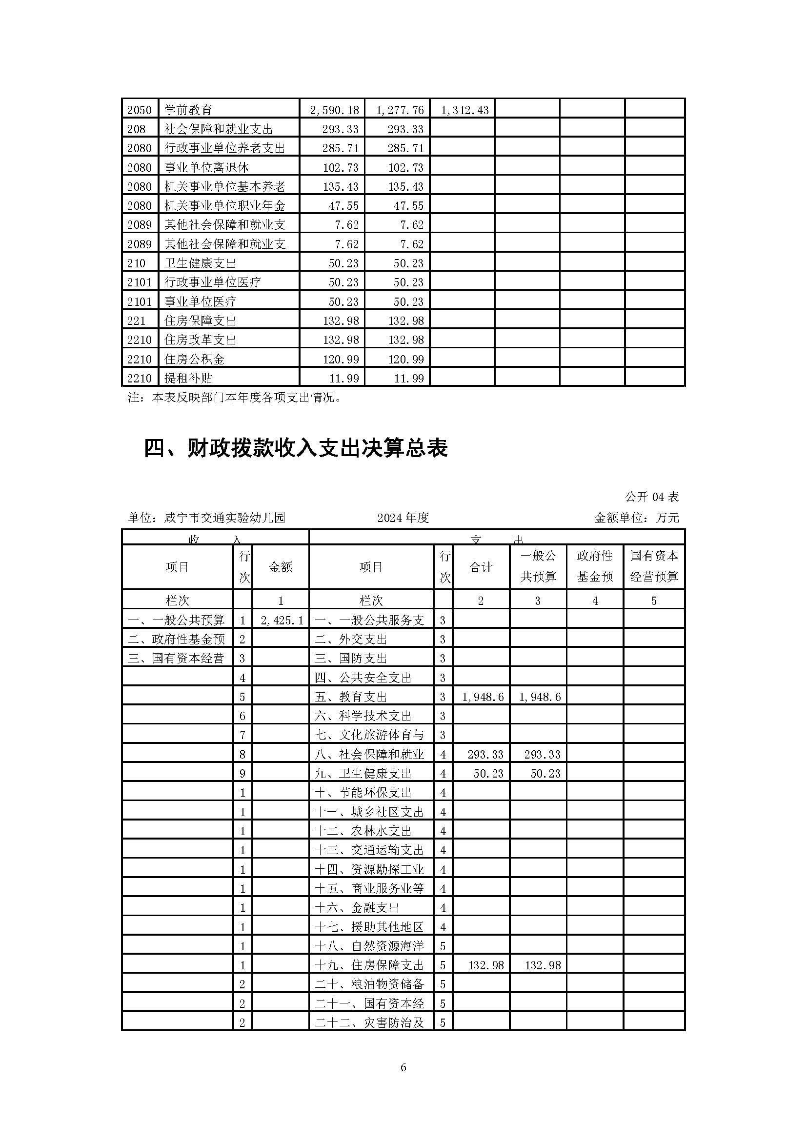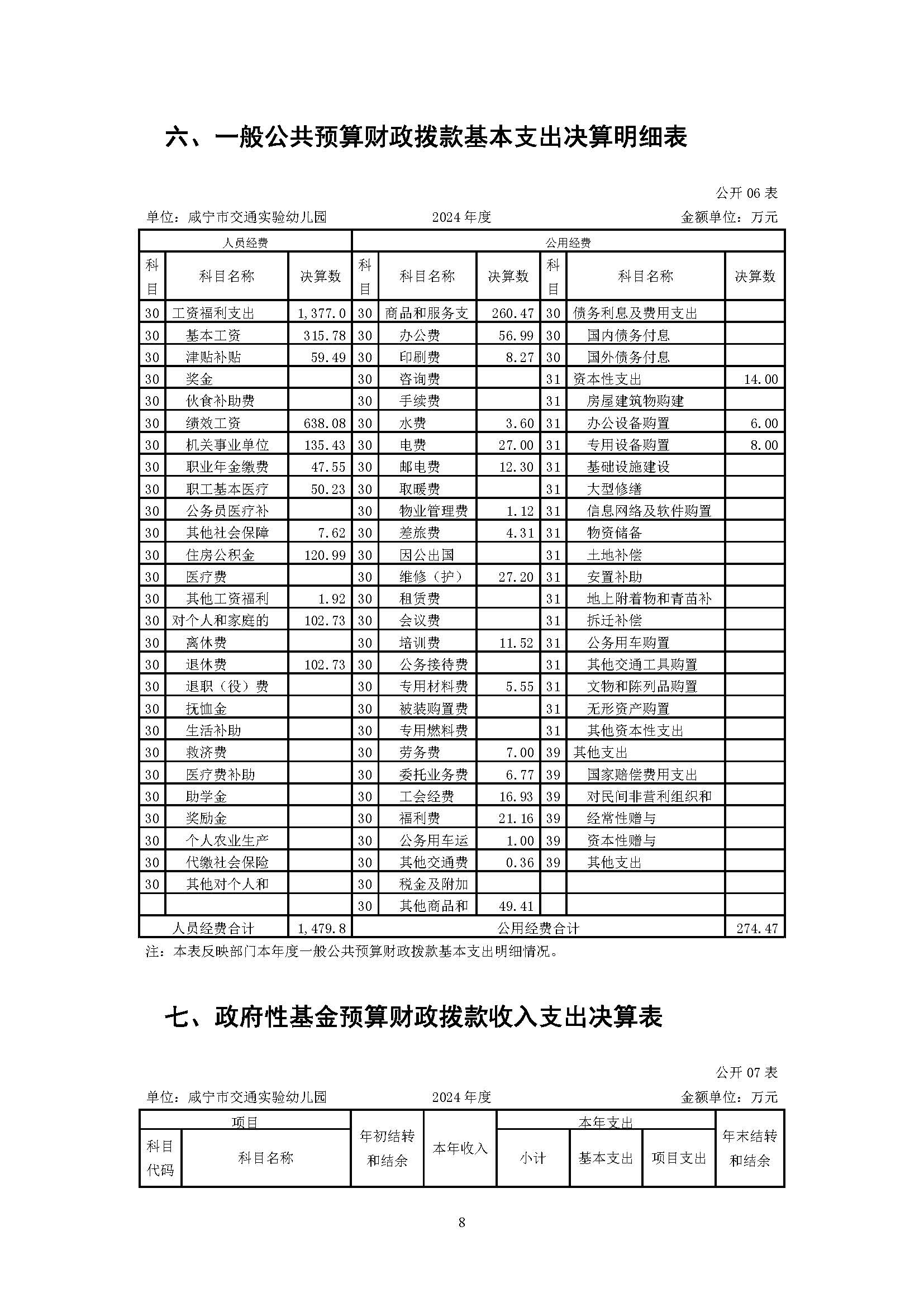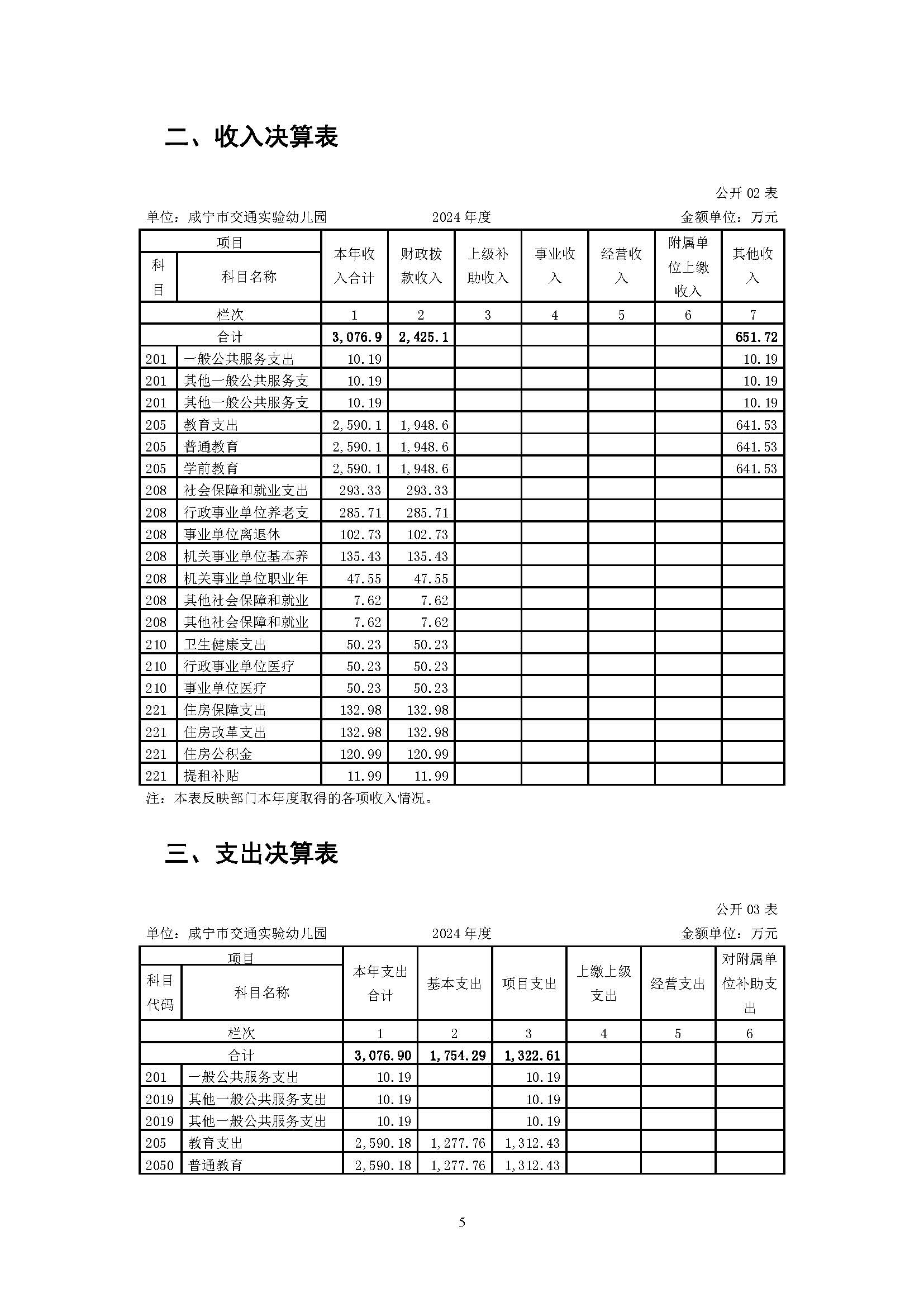 名 称: 咸宁市交通实验幼儿园2024决算公开 发布日期: 2025年11月06日