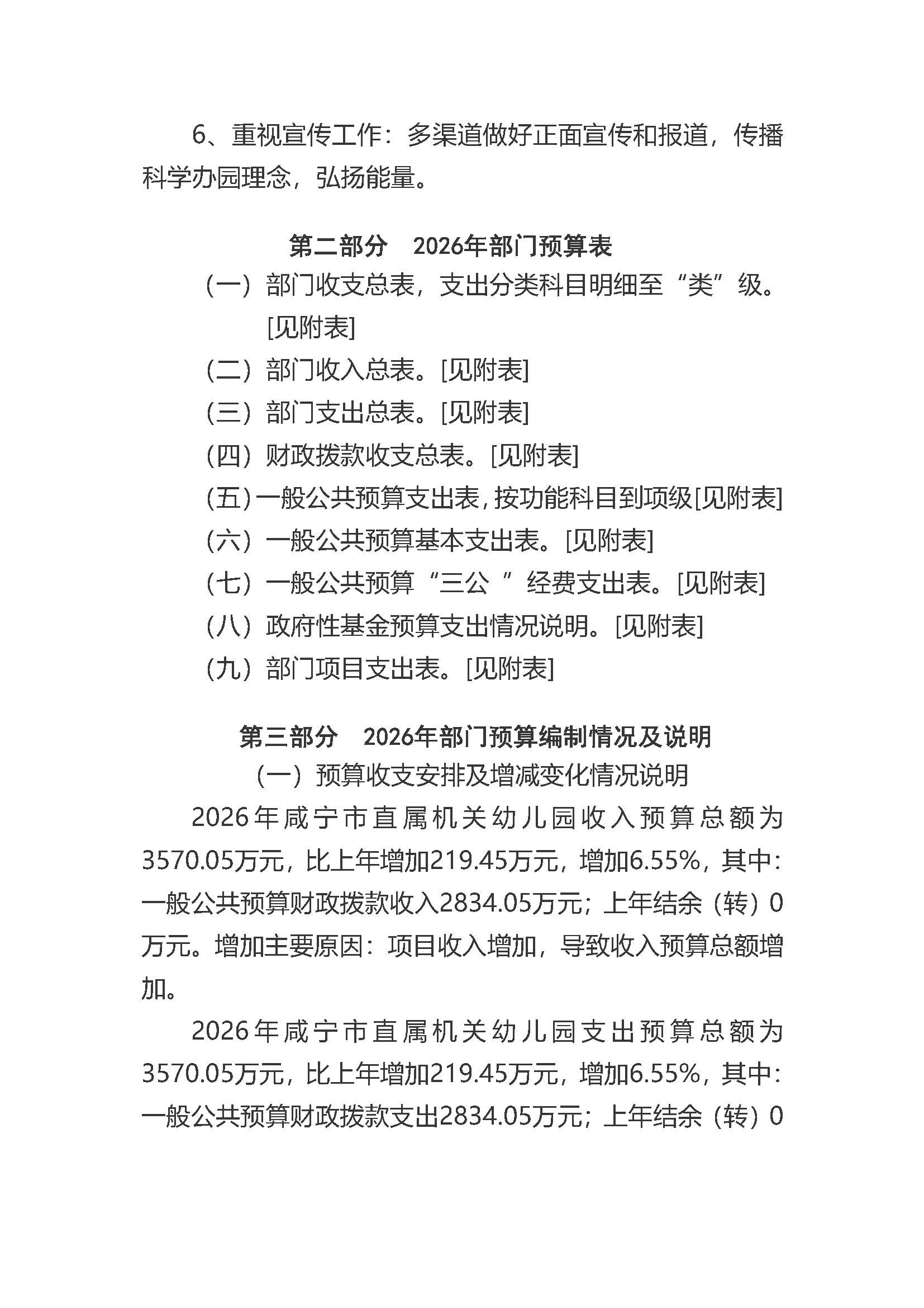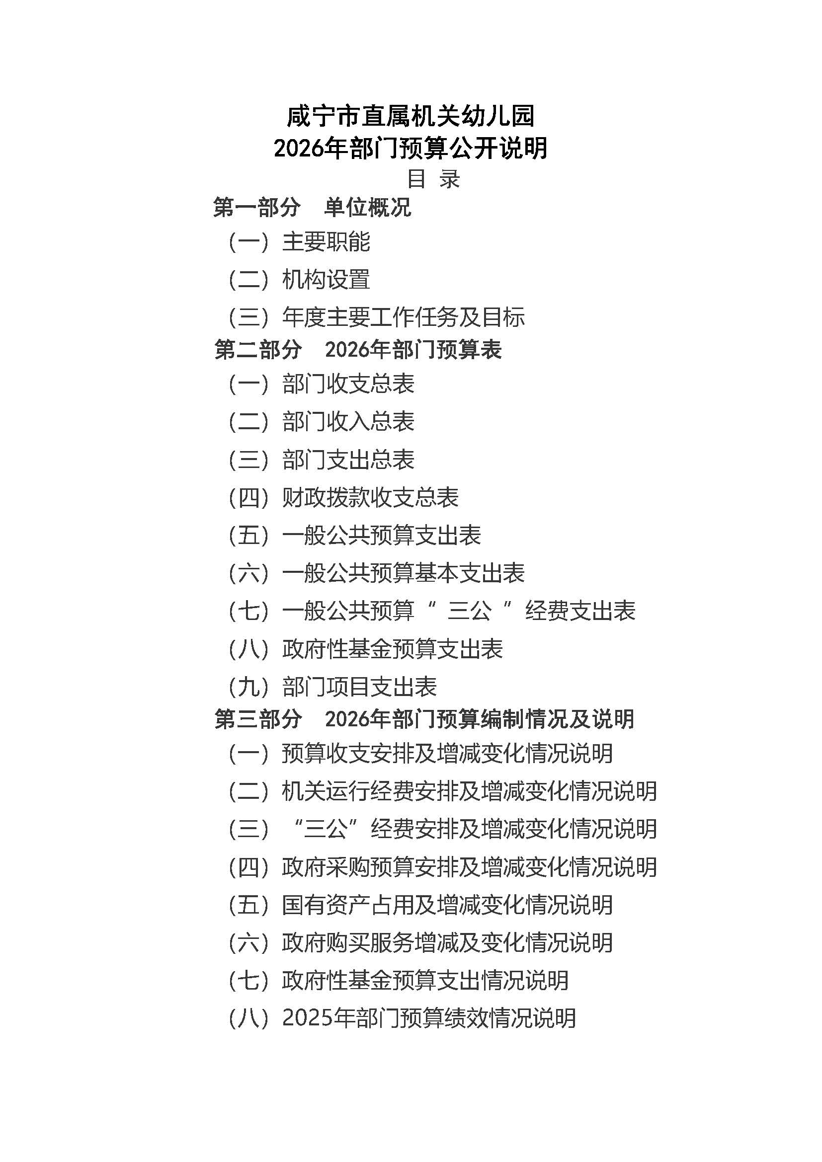 名 称: 咸宁市直属机关幼儿园2026年部门预算公开说明 发布日期: 2026年02月27日