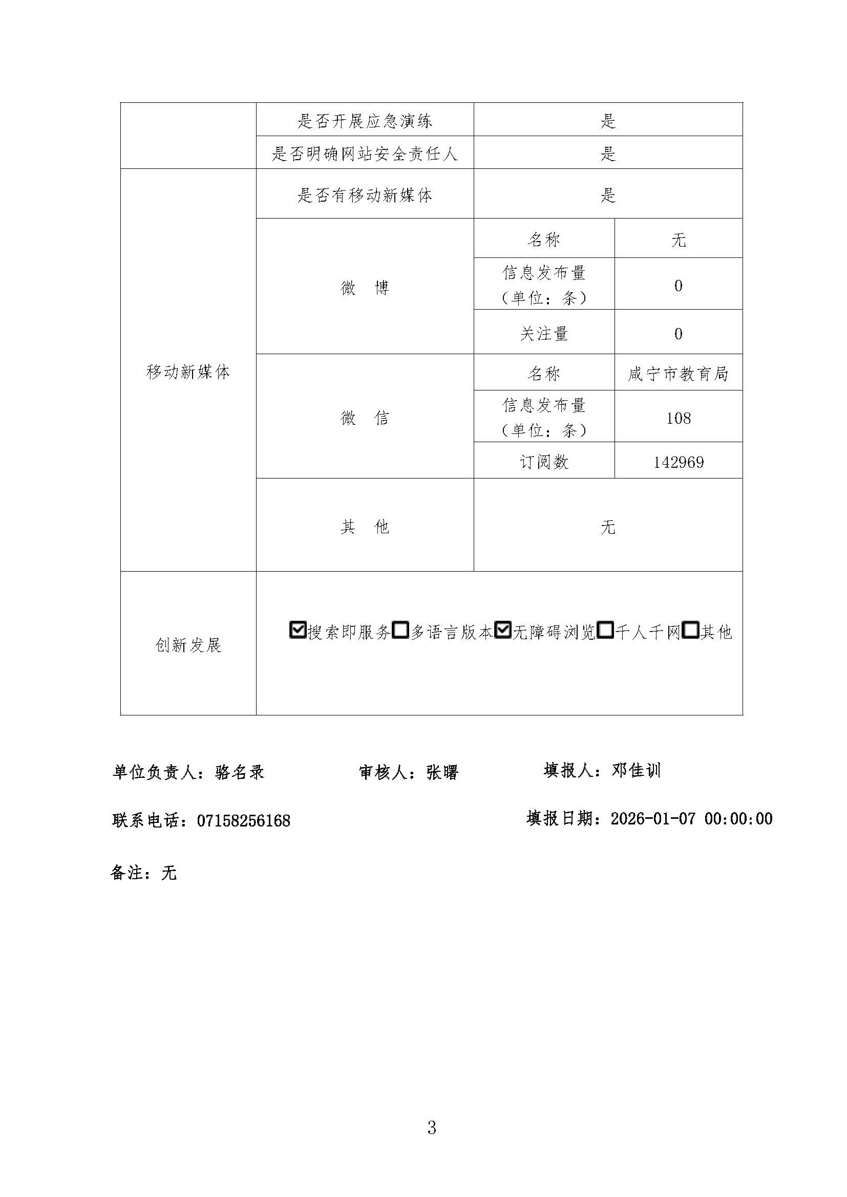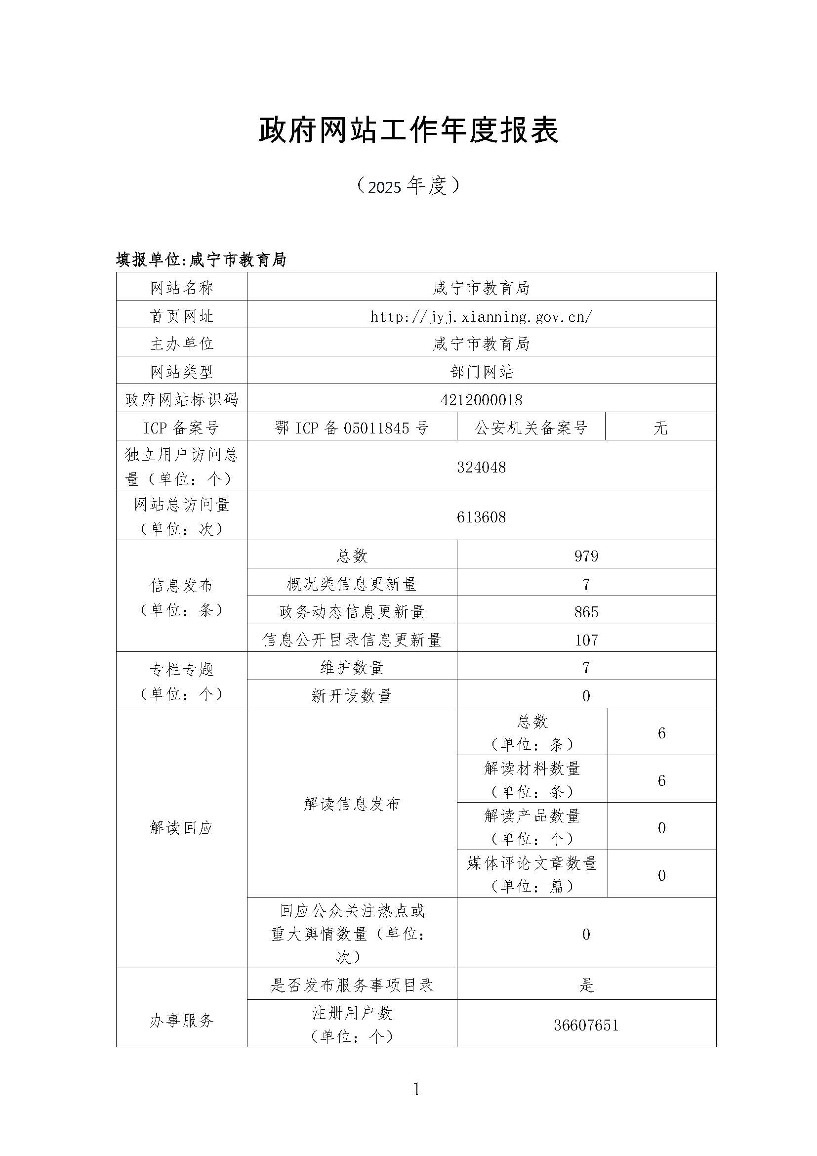 名 称: 咸宁市教育局2025年网站工作年度报表 发布日期: 2026年01月13日