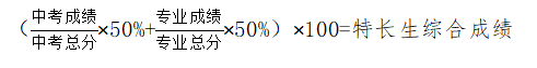 特长生成绩计算:普通高中学校须在该校特色项目招生计划内,对填报该校志愿的专业测试合格且中考成绩在学校最低分数控制线上的学生,按照专业成绩和中考成绩各占50%,从高到低依次录取;