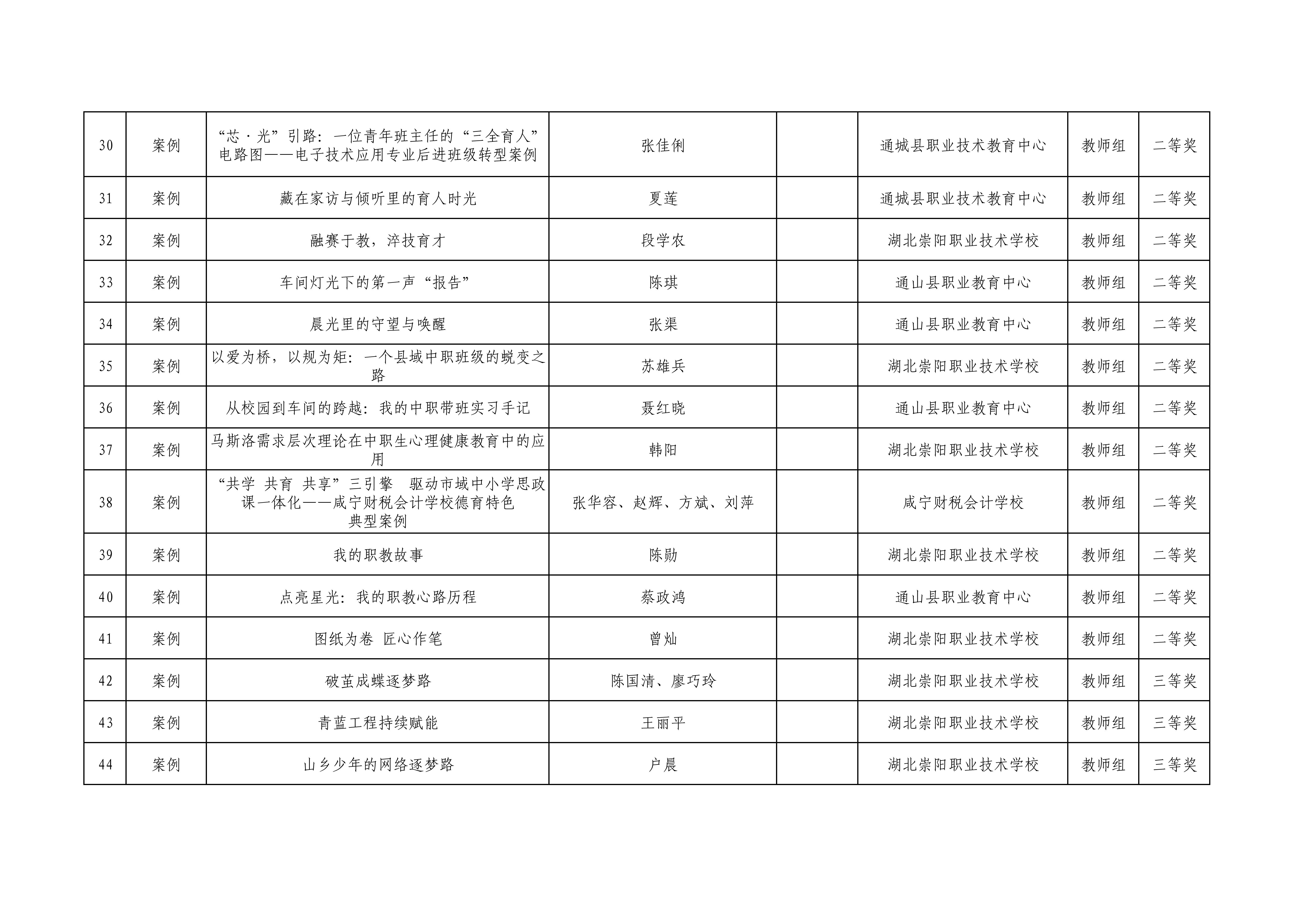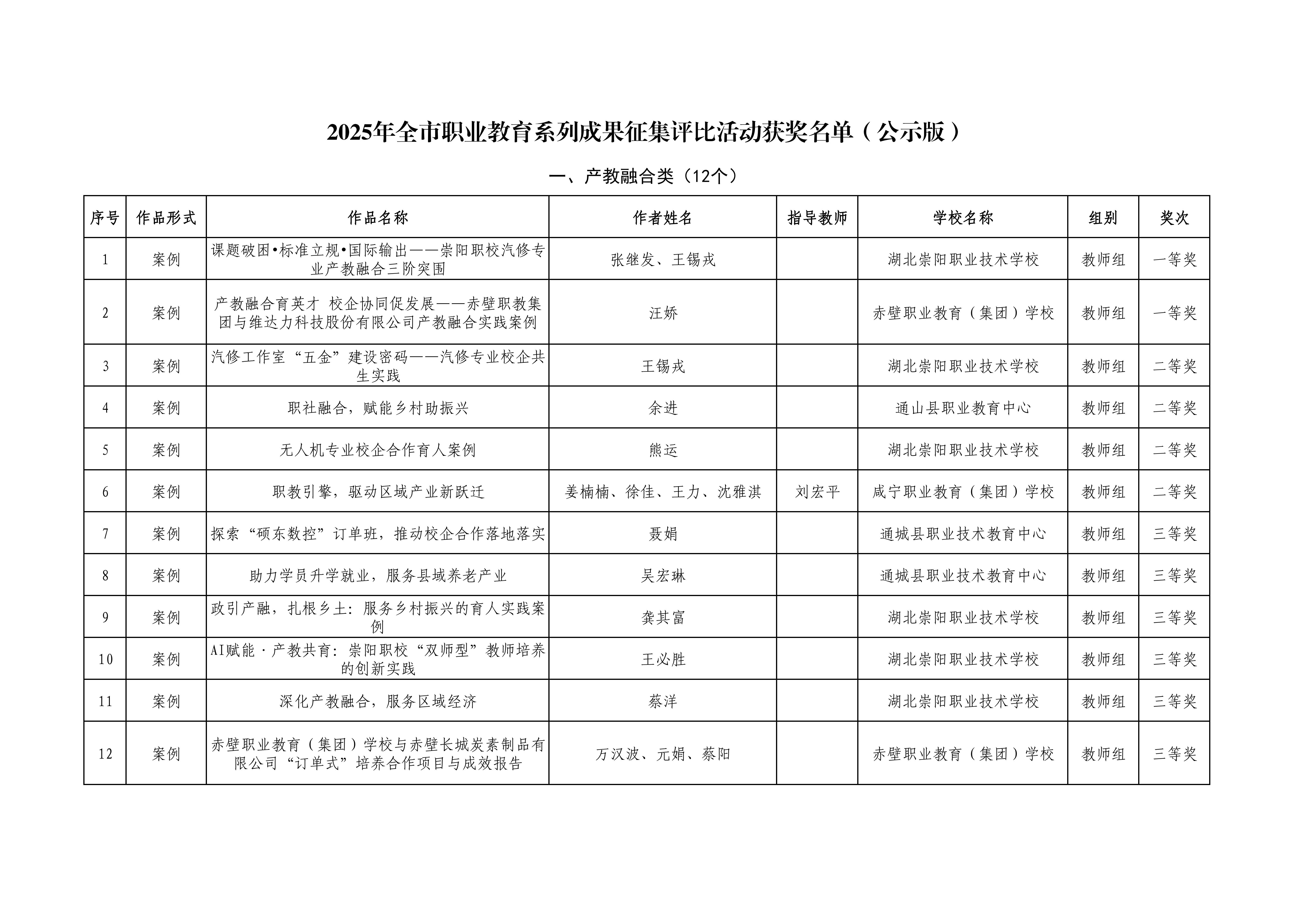 根据《关于开展2025年咸宁职业教育系列成果征集评比活动的通知》安排,我局组织开展了全市职业教育系列成果征集评比活动。经各校推荐、专家评审、审议复核等程序,评选工作已结束。现将获奖名单予以公示。