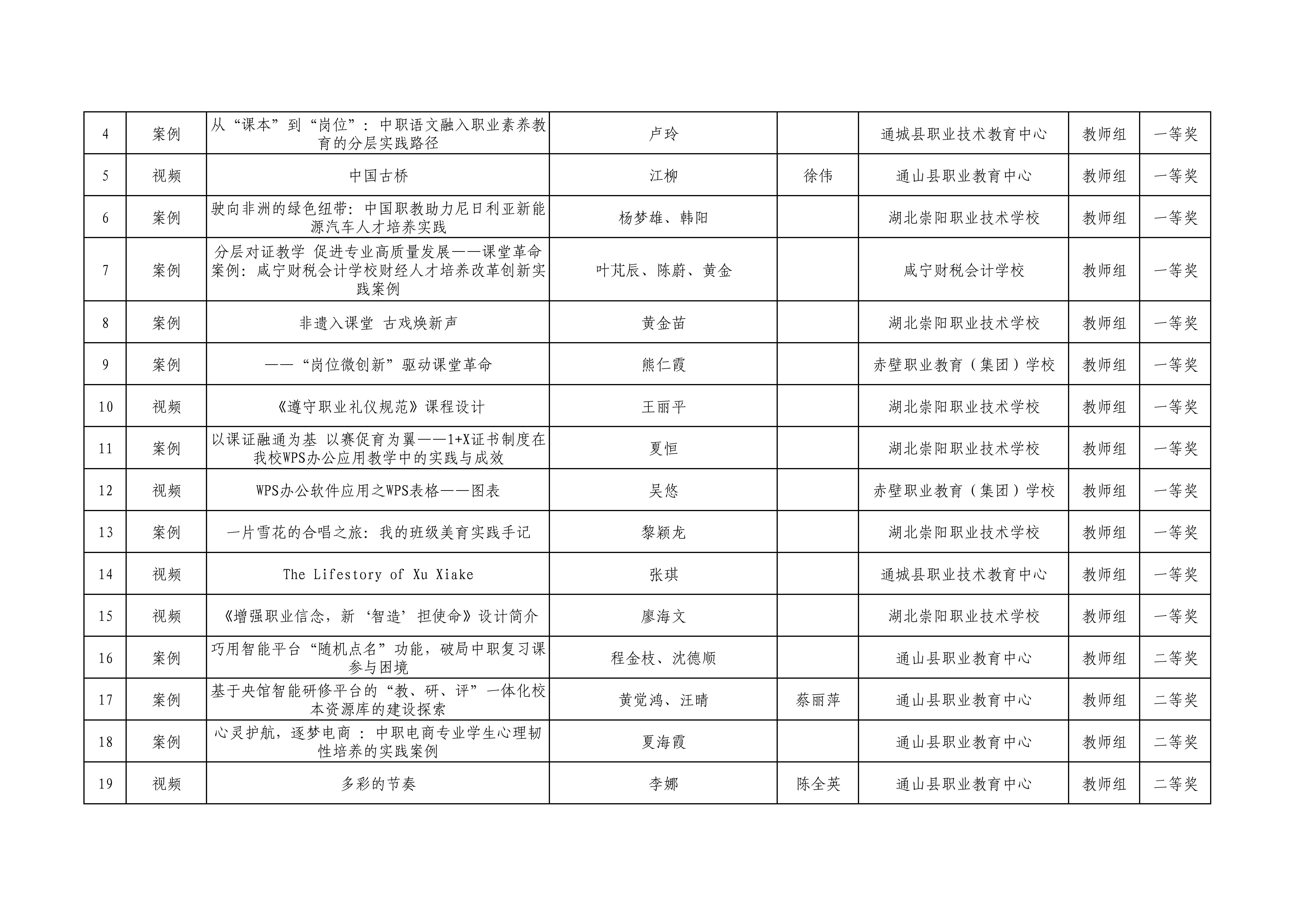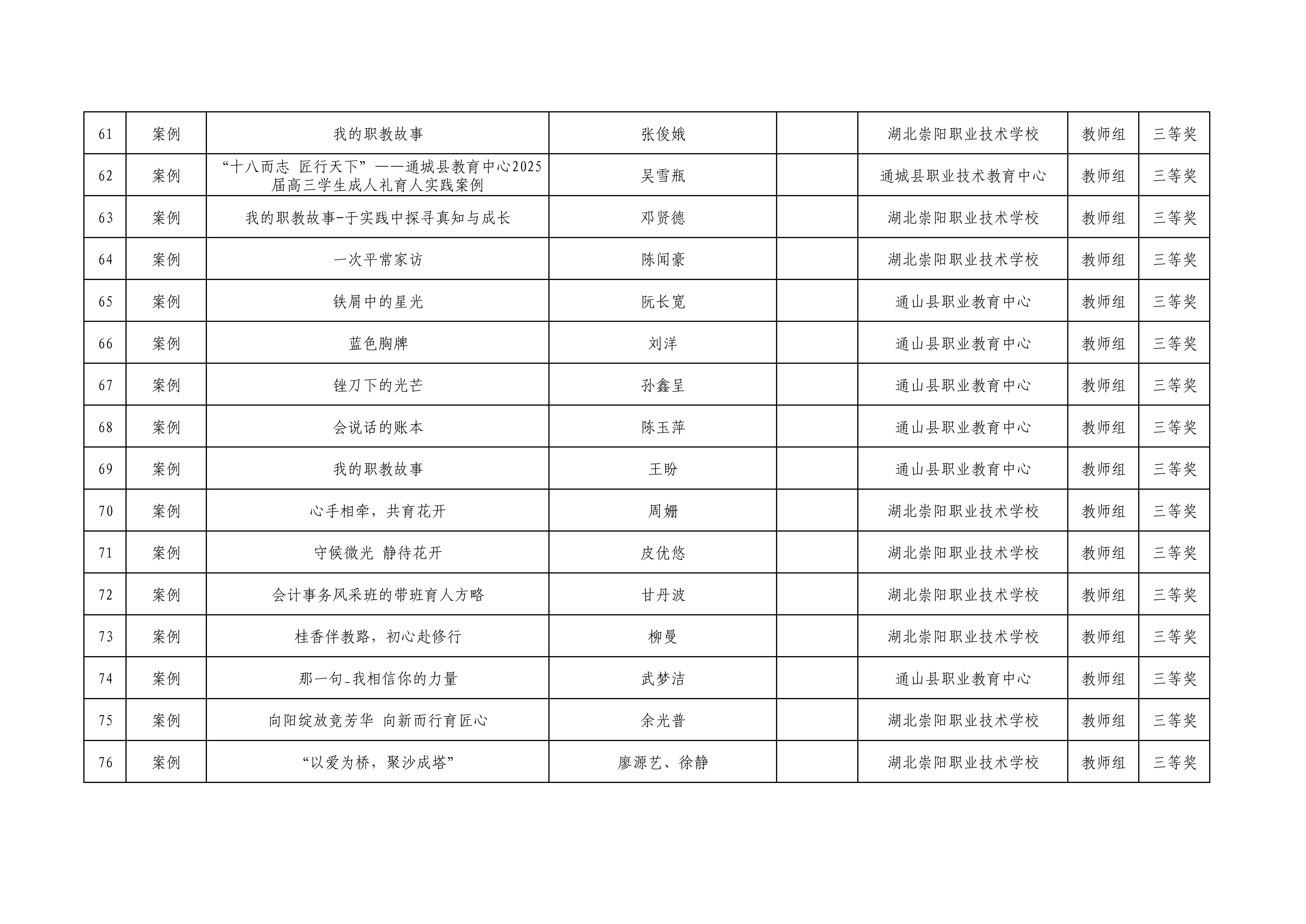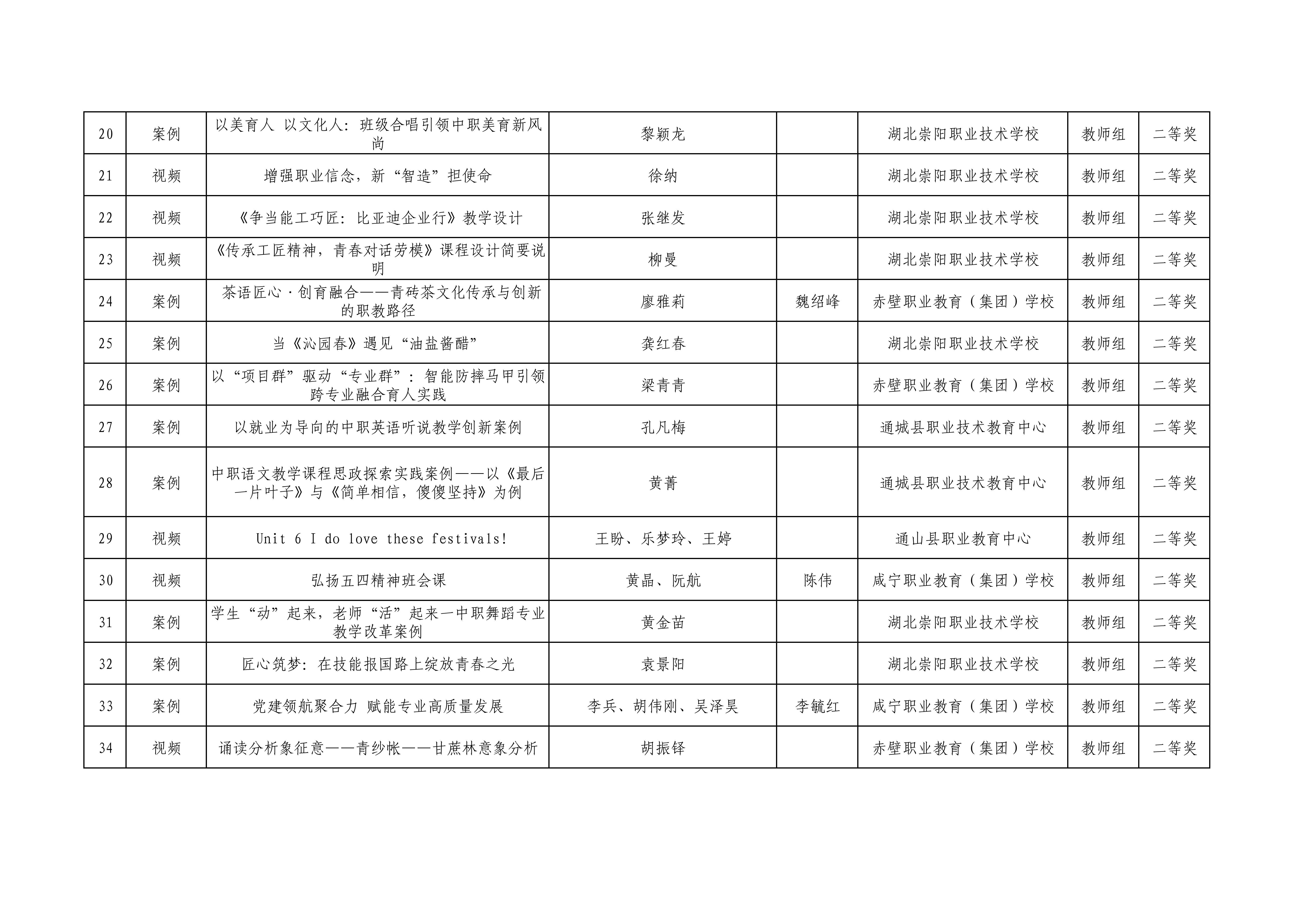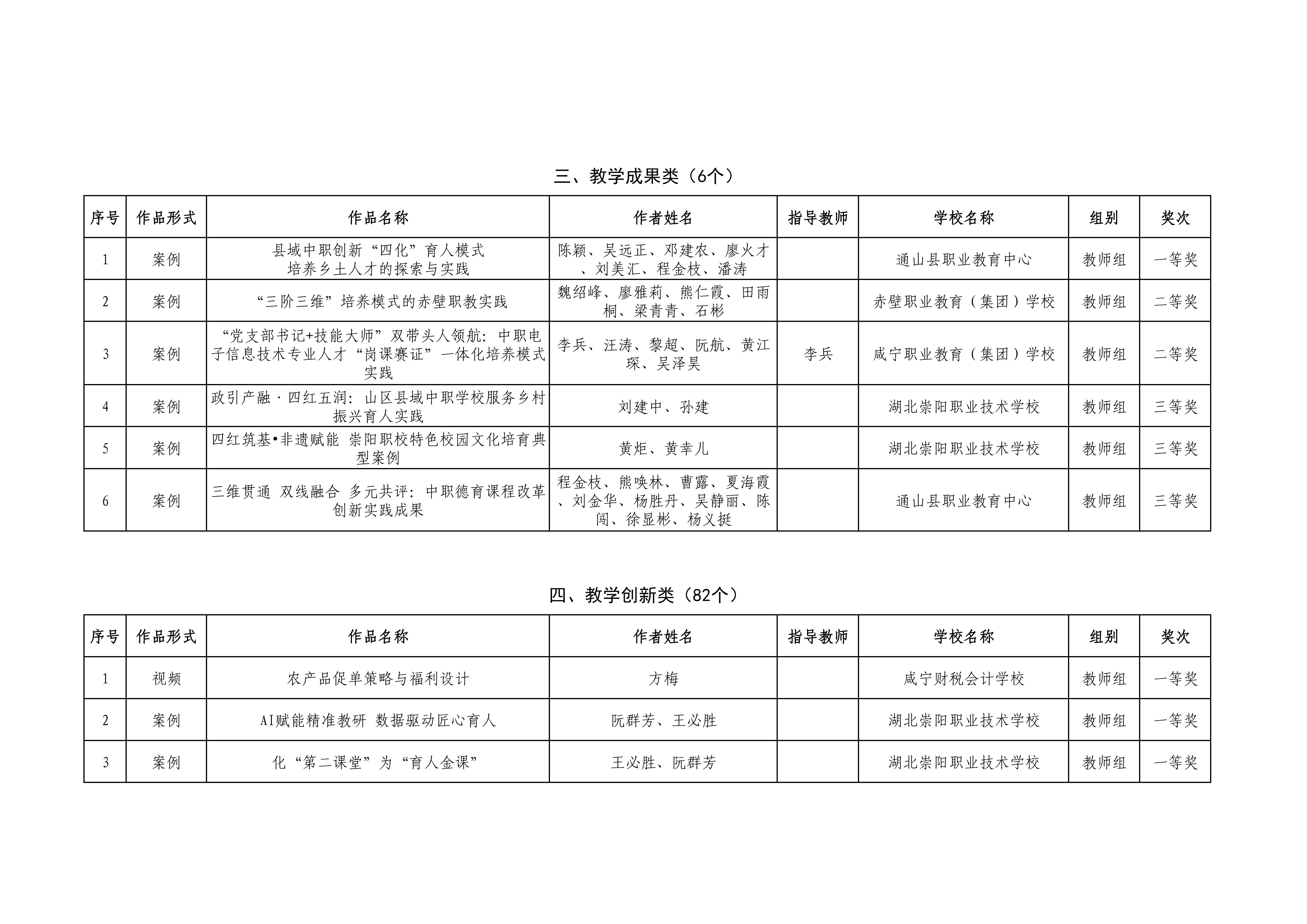 附件:2025年咸宁市职业教育系列成果征集评比活动获奖名单(公示版)