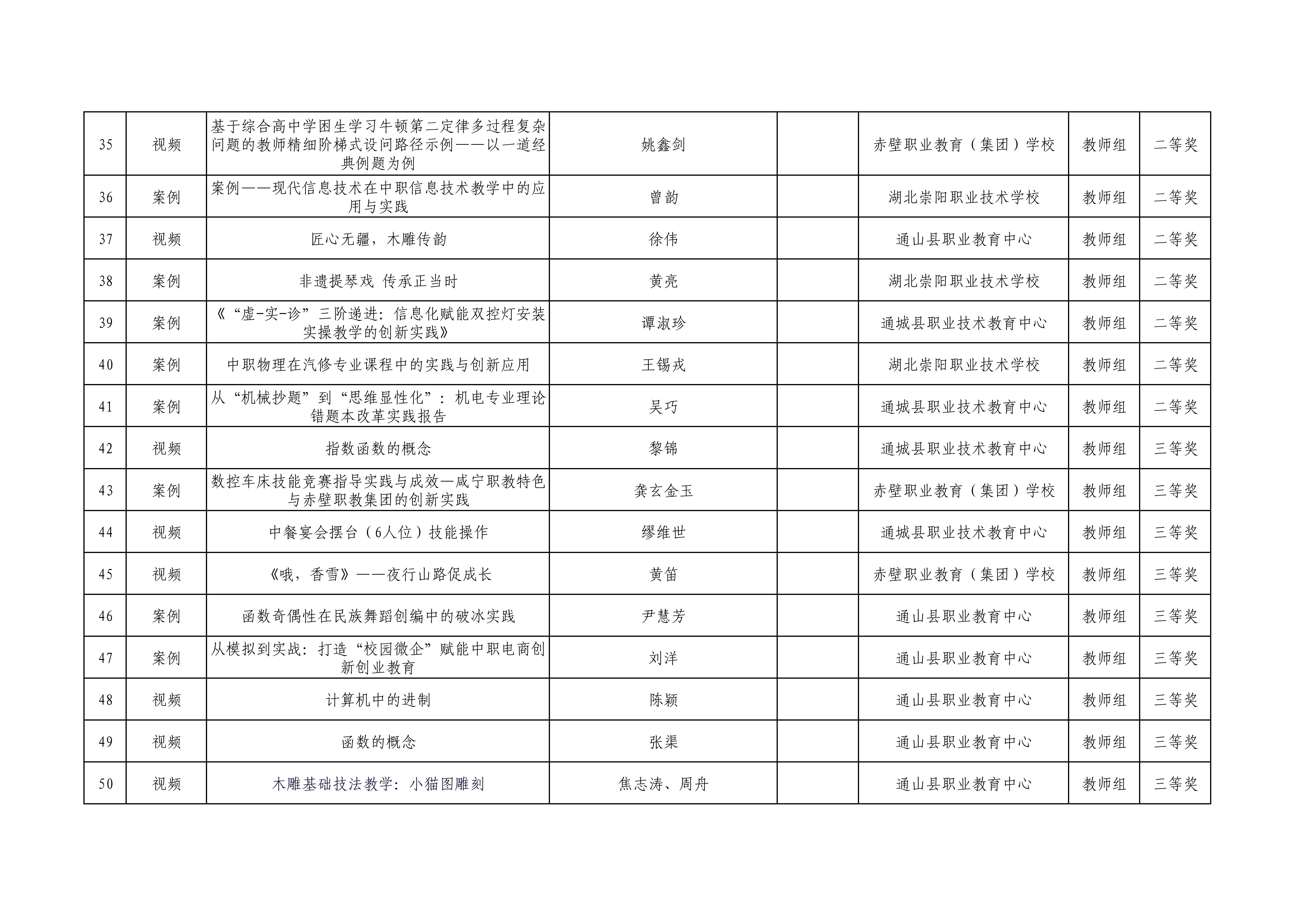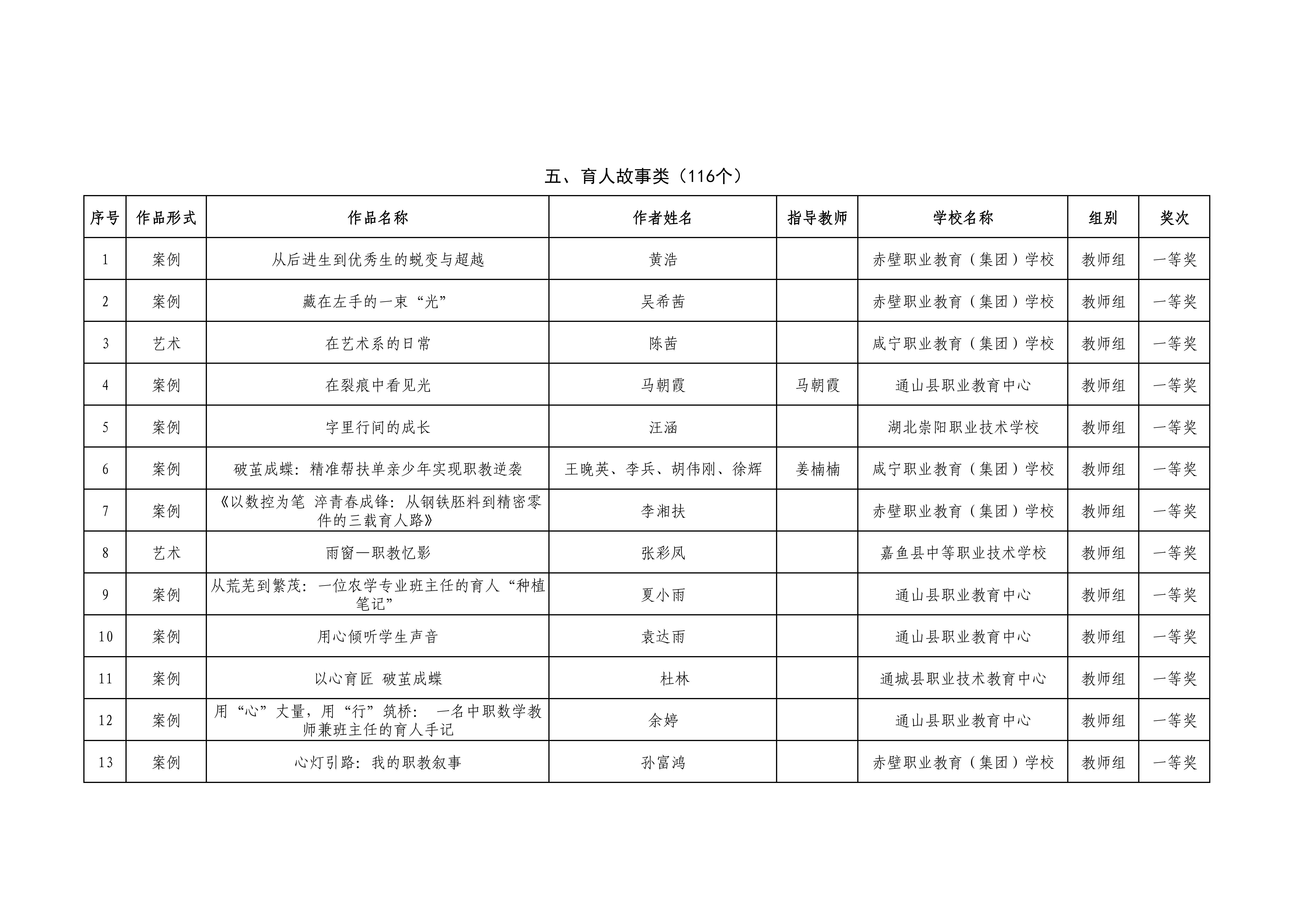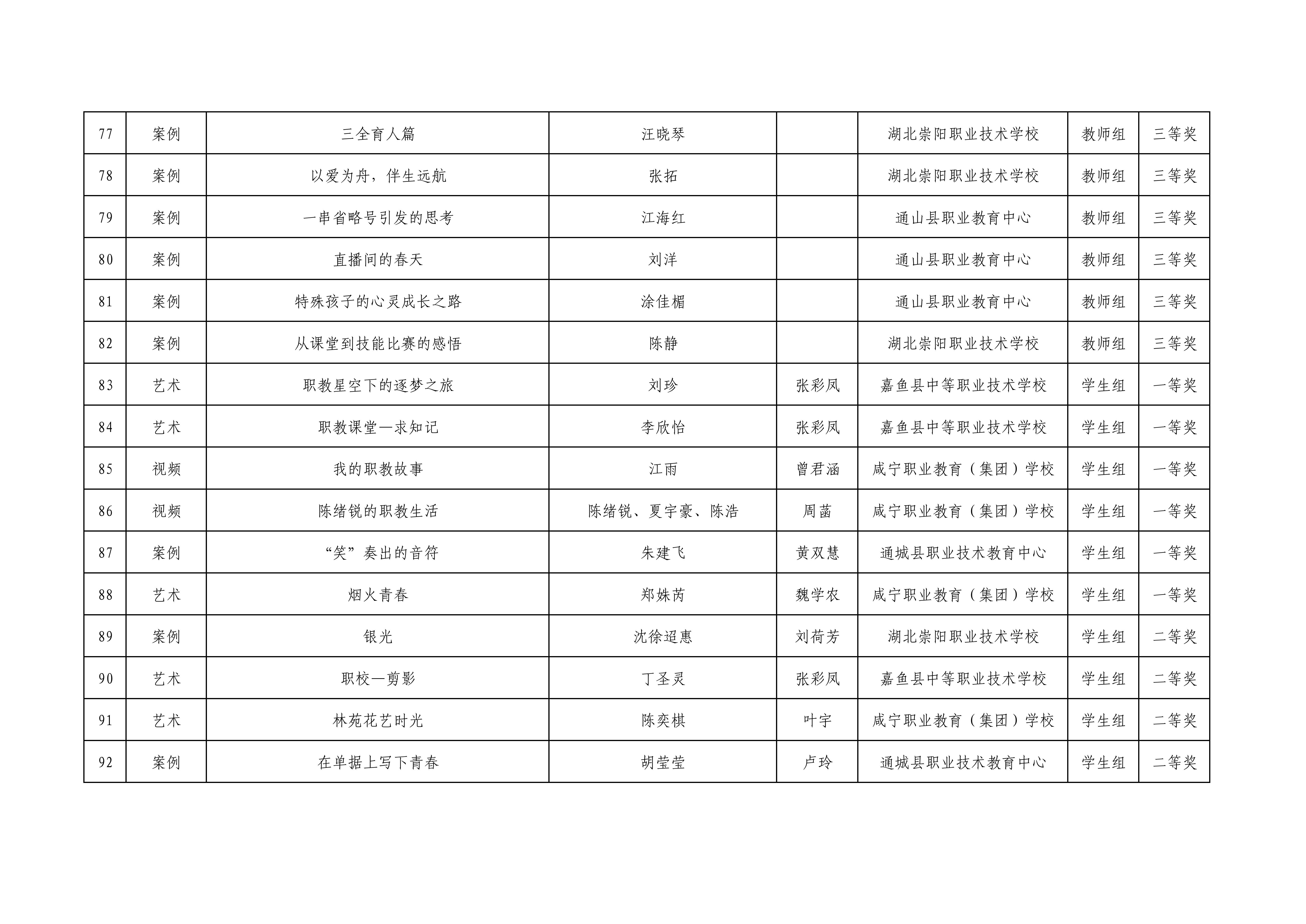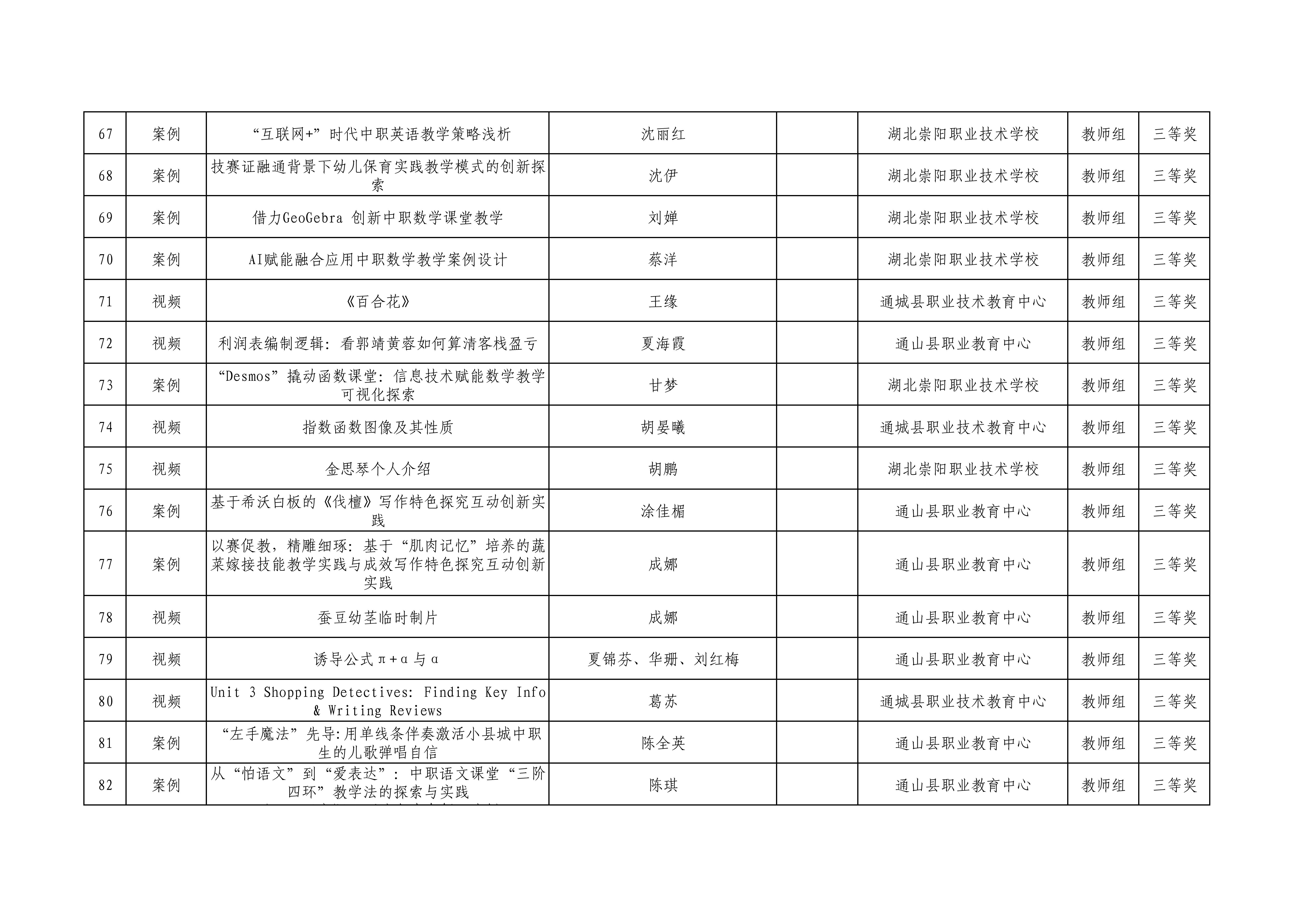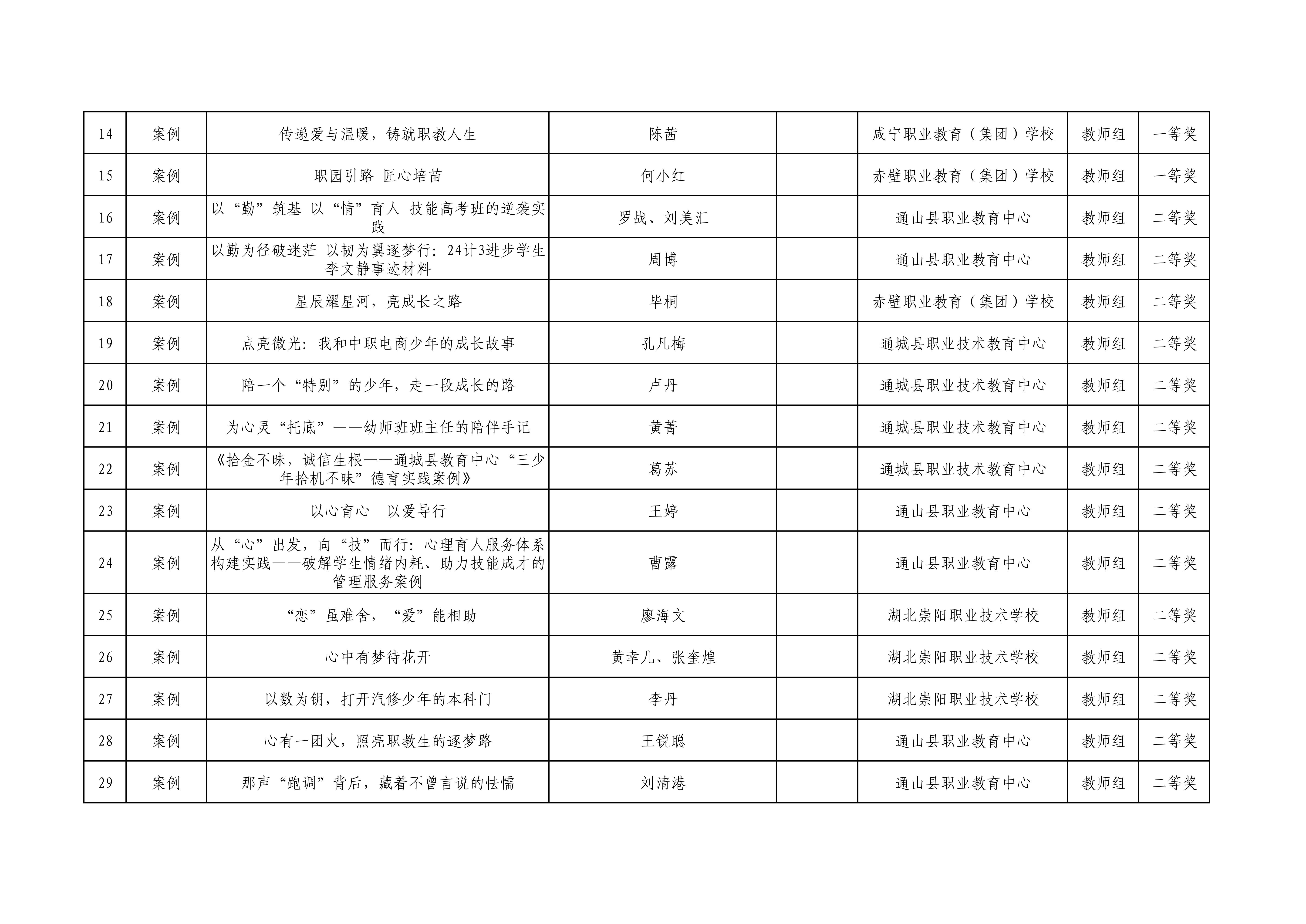附件:2025年咸宁市职业教育系列成果征集评比活动获奖名单(公示版)